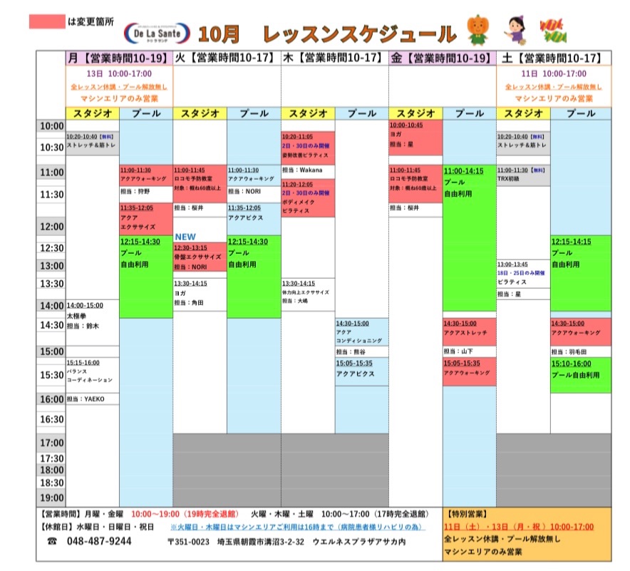 10月レッスンスケジュール