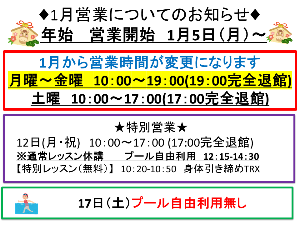 1月 営業についてのお知らせ